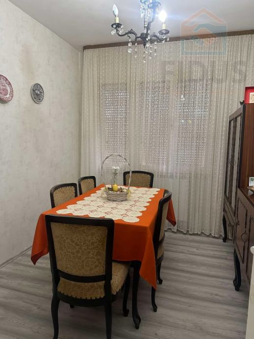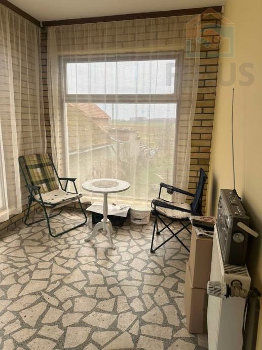 Prodaje se prostrana kuća u Bilju na glavnoj cesti površine cca 180 m2. Kuća se sastoji od prizemlja s garažom i kata te dvorišta površine 500 m2. U prizemlju se nalaze dvije spavaće sobe, ostava, wc te hodnik koji vodi do prvog kata na kojem se nalazi dnevna soba, trpezarija i kuhinja, spavaća soba, kupaonica te terasa površine 12 m2.