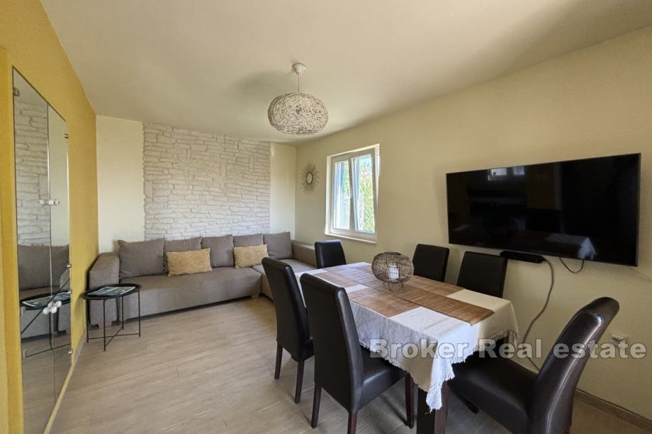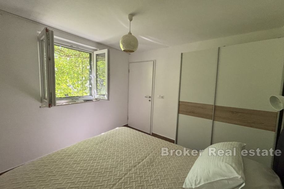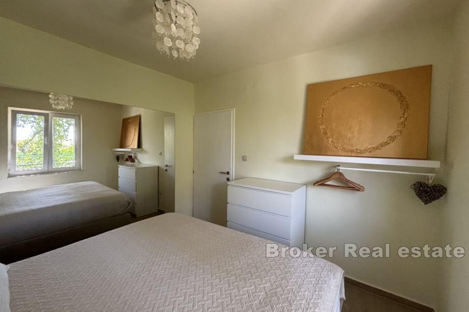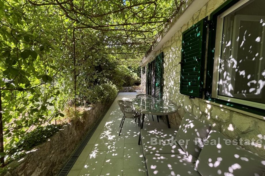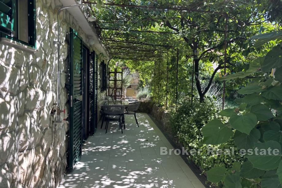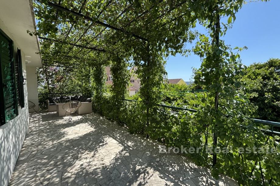 Na prodaju je manja obiteljska kuća vrlo blizu mora, na južnoj strani otoka Čiovo. Proteže se preko dvije etaže i južno je orijentirana s djelomičnim pogledom na more i s pomno obrađenim vrtom.