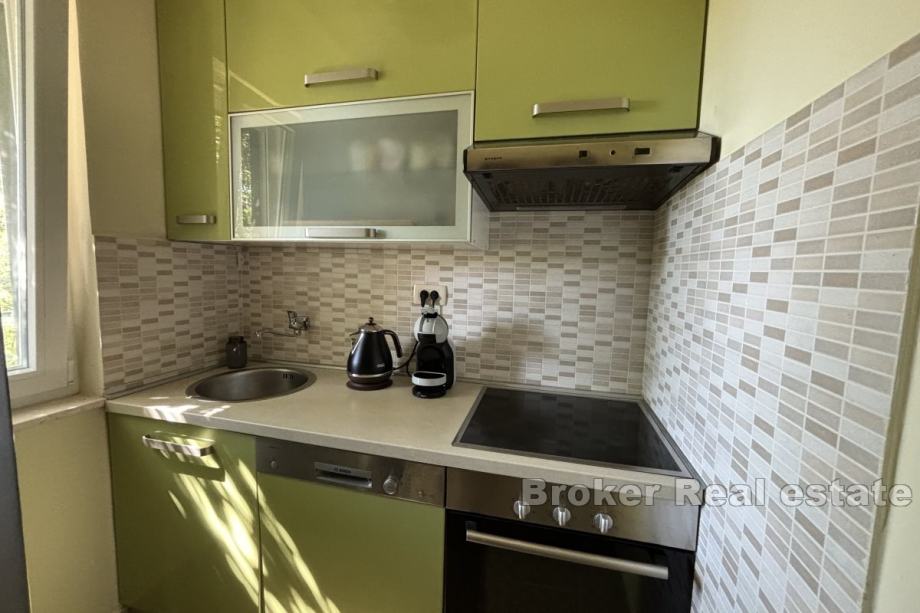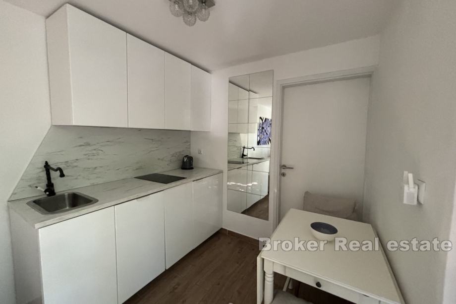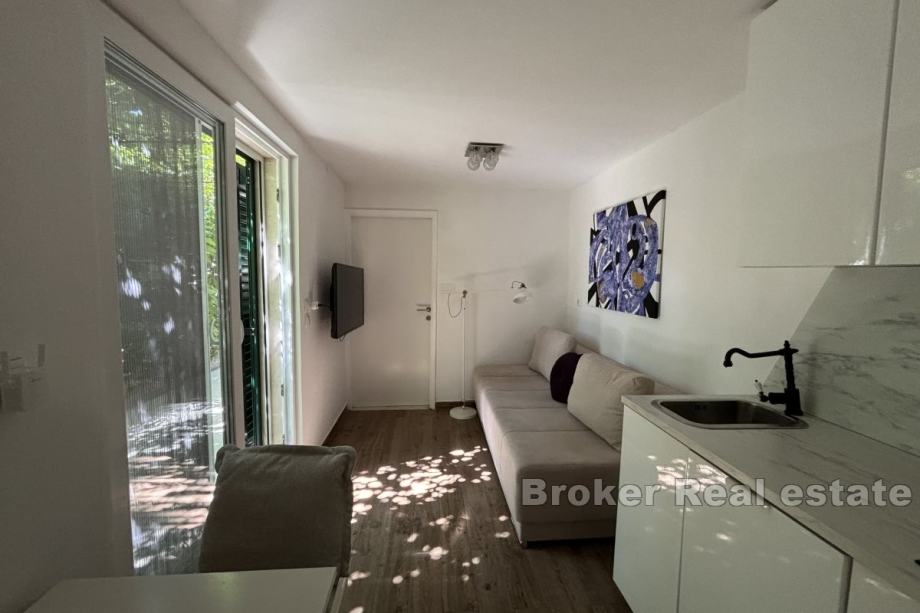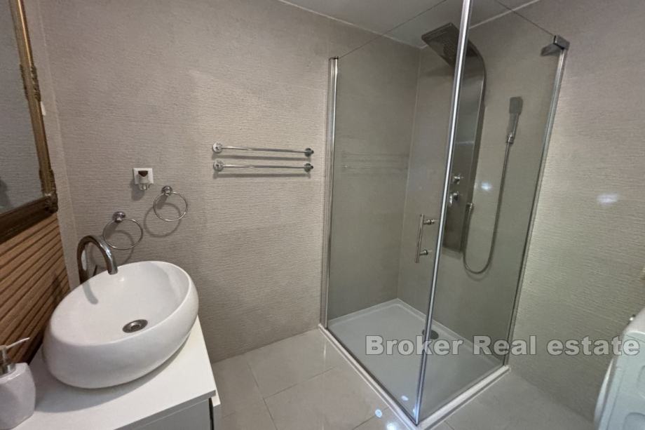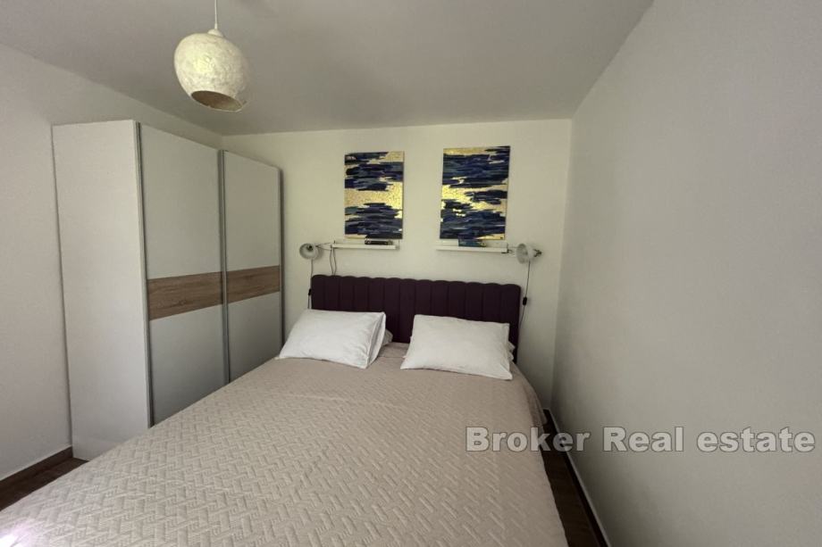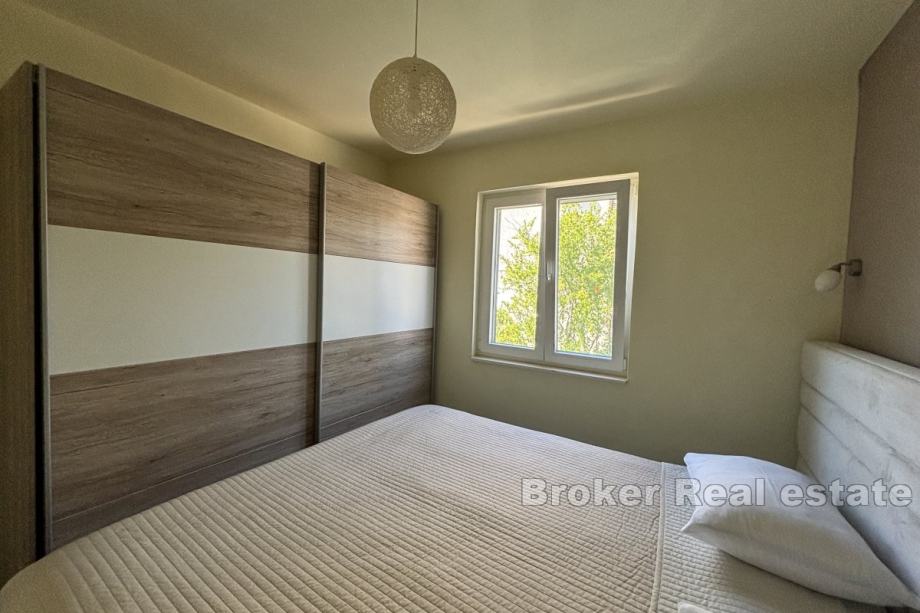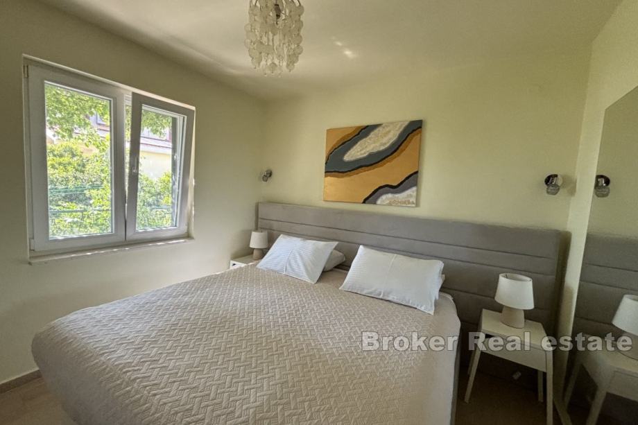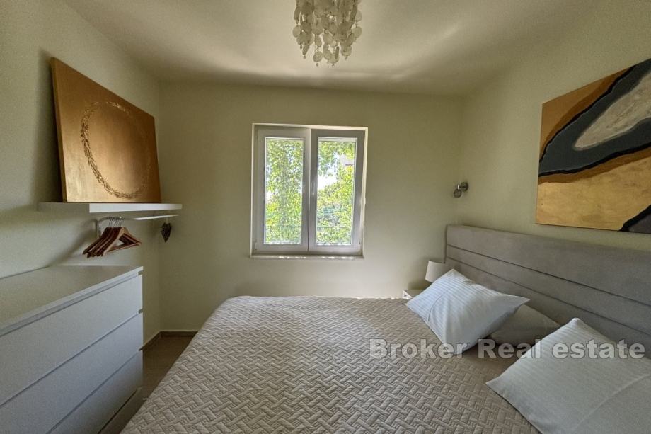 Sastoji se od dva apartmana od kojih svaki ima pripadajuću terasu. Na prizemnoj etaži se nalazi jednosoban apartman od 25 m² koji se sastoji od spavaće sobe, kupaonice te dnevnog dijela, dok se na etaži prvog kata nalazi dvosoban apartman od 55 m² koji se sastoji od dvije spavaće sobe, hodnika, kupaonice, kuhinje te blagovaonice s dnevnim boravkom. Kuća je klimatizirana te se prodaje namještena i opremljena.