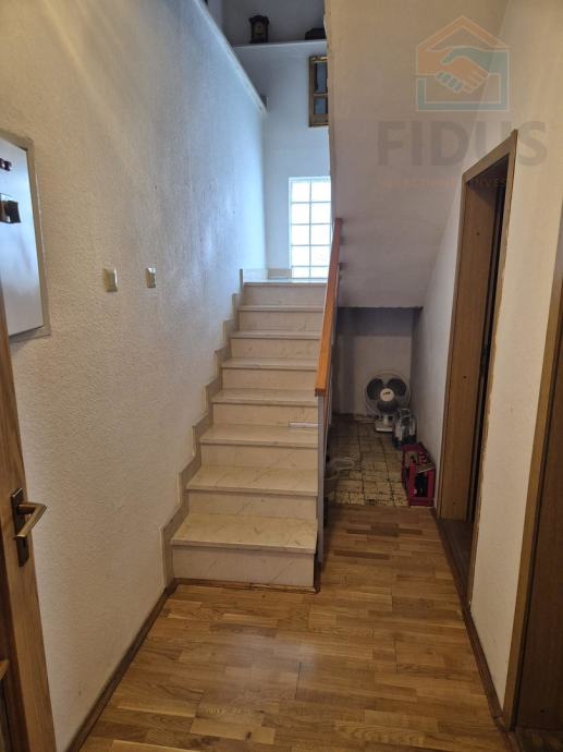 Nekretnina se sastoji od podruma bruto građevinske površine 110 m2 (po koeficijentu 55 m2), prizemlja bruto građevinske površine 103 m2, a u kojem se nalazi veliki dnevni boravak, kuhinja s trpezarijom, kupaonica i jedna soba, a visoko potkrovlje bruto građevinske površine 70 m2 sastoji se od četiri sobe i kupaonice.
