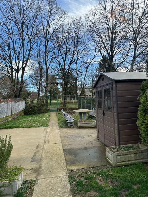 U sklopu kuće tj u podrumu je garaža, a ispred kuće moguće je parkiranje još jednog auta. Nekretnina s prostranim i uređenim dvorištem idealna je prilika za obitelj s djecom te blizine parka, škole i vrtića, centra Donjeg grada, banke, tržnice, itd.