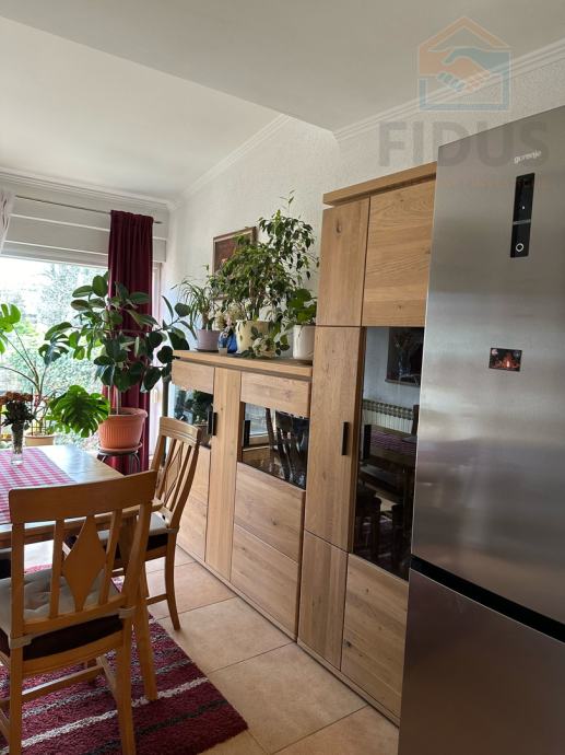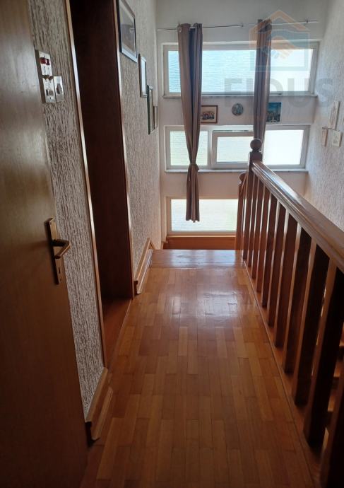 Prizemlje površine cca 75 m2 se sastoji od dnevnog boravka, kuhinje i blagovaonice, spavaće sobe s kupaonicom te toaleta i spremišta, a potkrovlje površine 67 m2 sastoji se od kupaonice, tri spavaće sobe i lođe. U podrumu površine 64 m2 nalazi se poslovni prostor, garaža, međuprostor i ostava. Grijanje je na plin, a ugrađene su i tri klime.