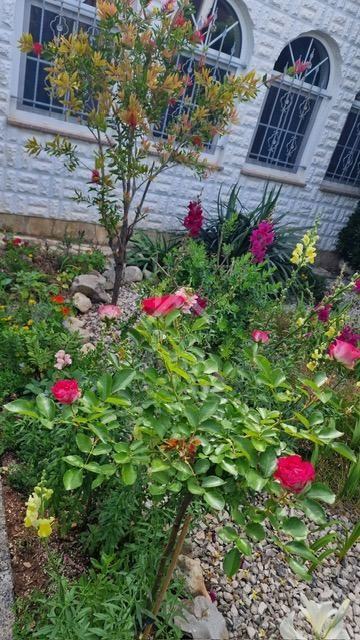 Između kuće i garaže se nalazi prekrasno uređeno dvorište površine cca 30m2 i ljetna kuhinja.