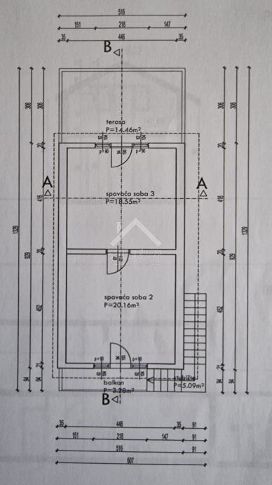 Smještena je na parceli površine 158m2 i sastoji se od prizemlja i kata.
