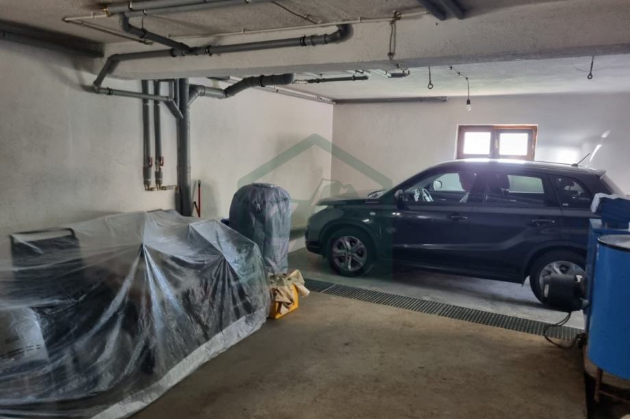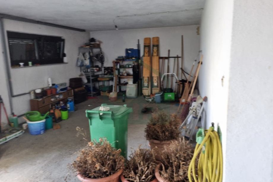 U prizemlju kuće su dvije garaže (PVC vrata na daljinski) i predprostor, u koji se mogu smjestiti čak četiri automobila, a tu je i spremište za lož-ulje zapremine 2000 l. Na prvom katu nalaze se veranda, hodnik, open space kuhinja, blagovaonica i dnevni boravak, te još jedna soba, kupaonica, ostava i balkon. Boravak i blagovaonica imaju izlaz na balkon.
