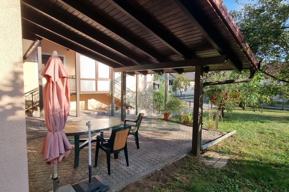 Ispred dvorišnog objekta je nadstrešnica površine 11 m² s vrtnim stolom okružena zelenilom i cvijećem. Okućnica površine 800 m² sa uređenim pristupom u cijelosti je ograđena sa svih strana te osigurava izuzetno lijep i intiman prostor uz obilje potencijala za ugodan obiteljski život. Dvanaest voćaka (jabuke, kruške, šljive, dunja, orah) čine ugođaj boravka u prirodi.