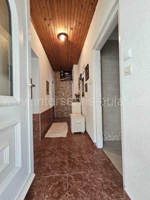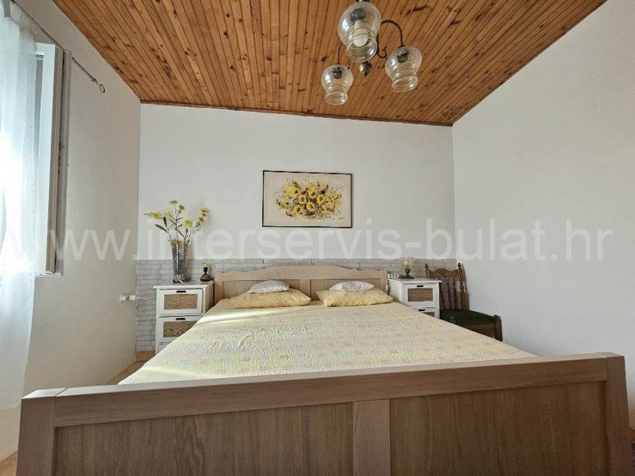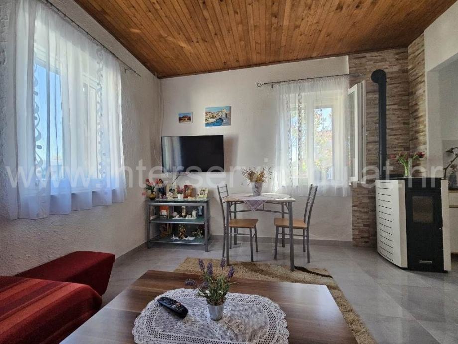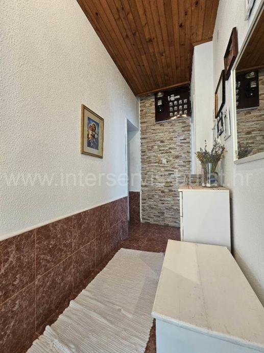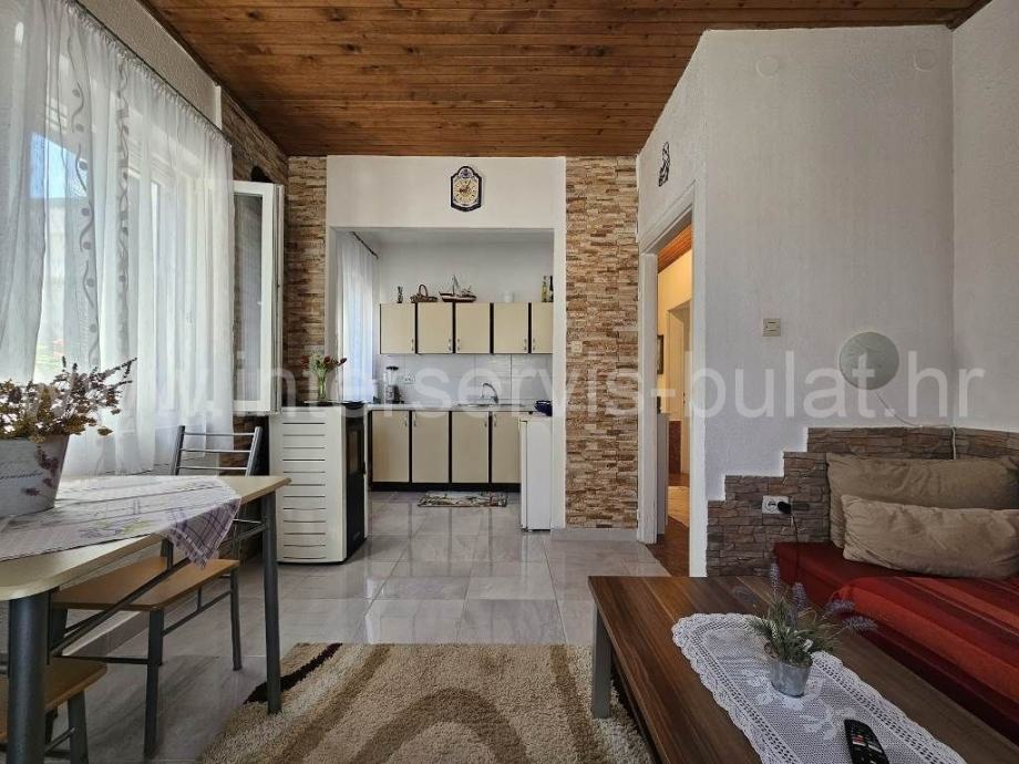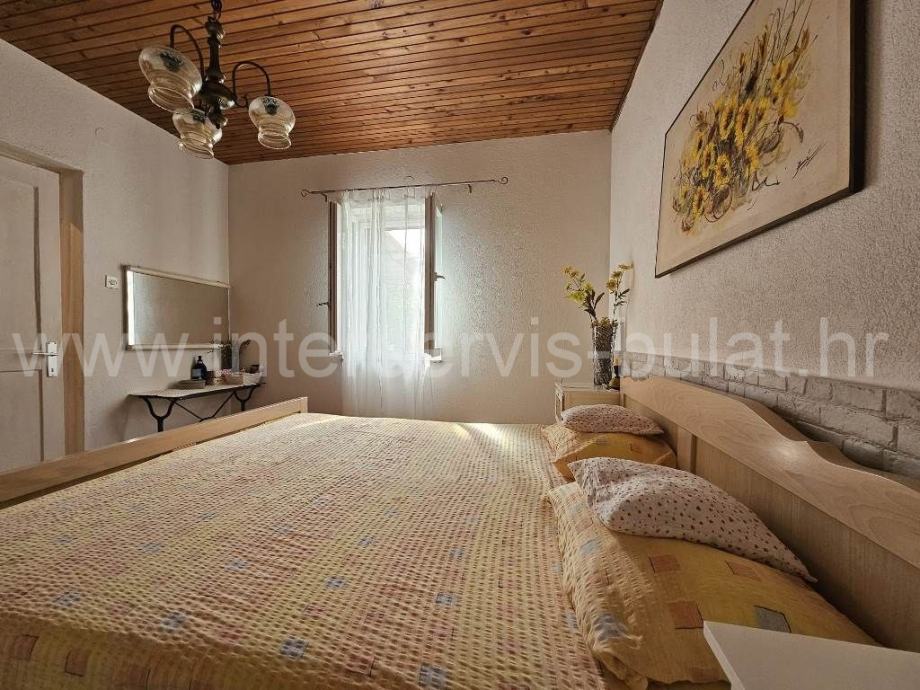 Kuća je uređena i useljiva te nudi 67m2 stambene površine. Sastoji se od hodnika, kupaonice, 2 spavaće sobe, dnevnog boravka s blagovaonicom i kuhinje. Kuća je opremljena klima uređajem i peći na pelete.