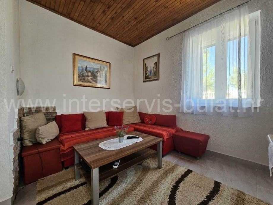 Na ekskluzivnoj lokaciji, uz more i plažu, nalazi se lijepa dvojna prizemnica, položena na ograđenoj parceli od 323m2.