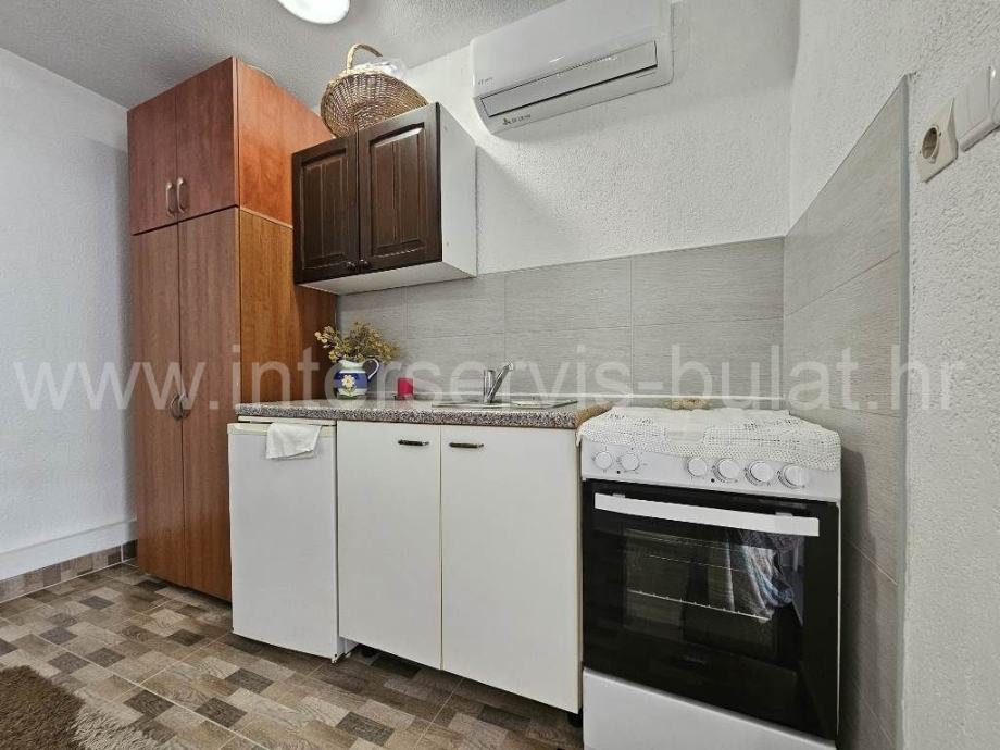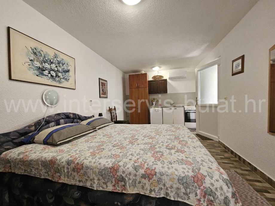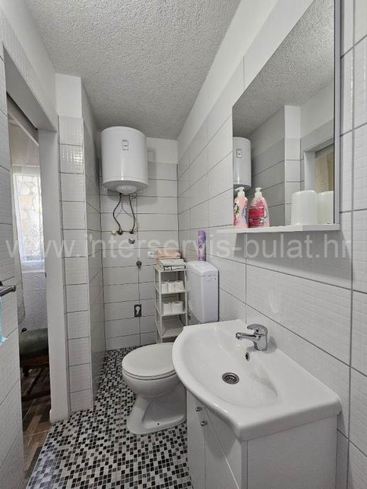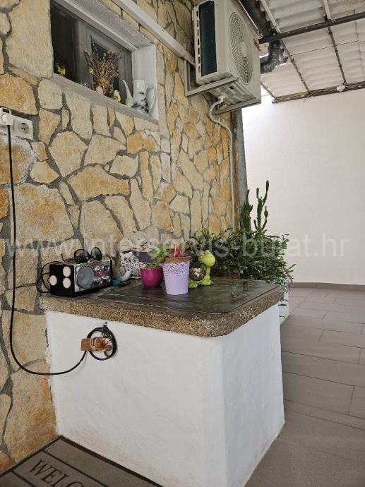 Ispred kuće se nalazi komforna, natkrivena terasa od 30m2, ljetna kuhinja i vanjski WC. Uz kuću, u pomoćnoj zgradi uređen je studio apartman od 26m2.