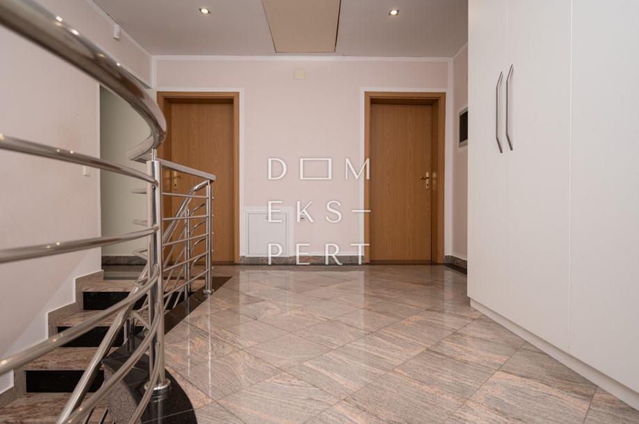 Vanjska stolarija je drvena u prizemlju, na katu je postavljena aluminijska. Na podovima postavljen parket u prizemlju (dnevni boravak i spavaća soba), keramičke pločice i mramor na stubištu. Na podovima na katu je u sobama postavljen laminat.