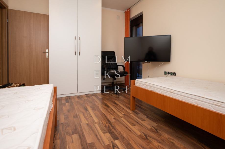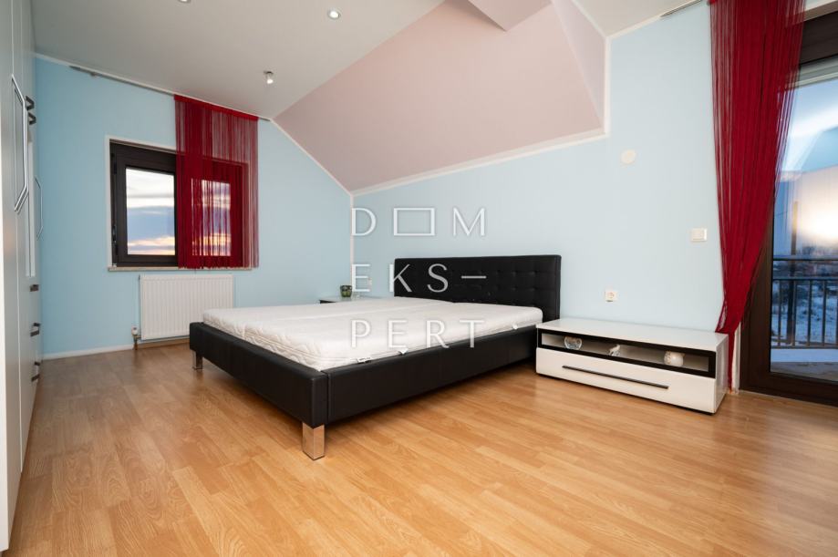 Na katu se nalaze tri spavaće sobe, sve imaju izlaz na balkon, kupaonica i spremište. S obzirom na položaj stubišta, na katu postoji mogućnost za odvojenu stambenu jedinicu uz određene preinake.