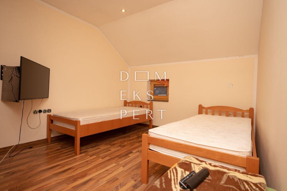 Sastoji se od prizemlja površine 111.37 m², visokog potkrovlja površine 90.06 m² i garaže površine 48 m². Kuća je lijepo i uredno održavana, odmah je useljiva.