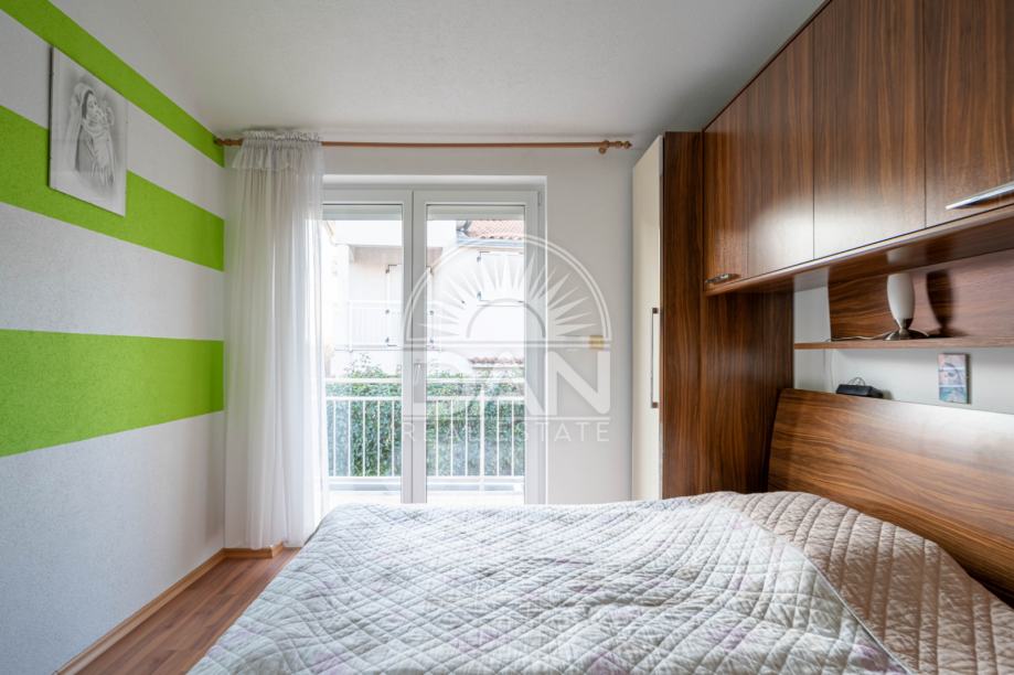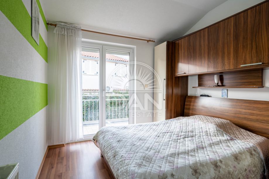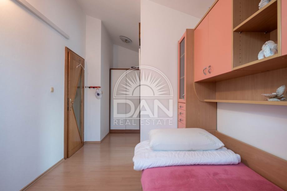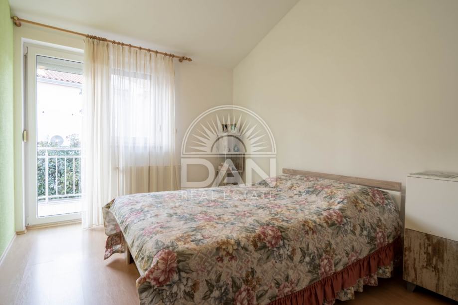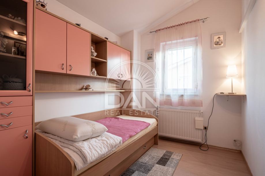 Unutarnjim stepenicama dolazi se na kat gdje su smještene tri spavaće sobe, od kojih dvije imaju izlaz na južno orijentiranu terasu, kao i jedna zajednička kupaonica.