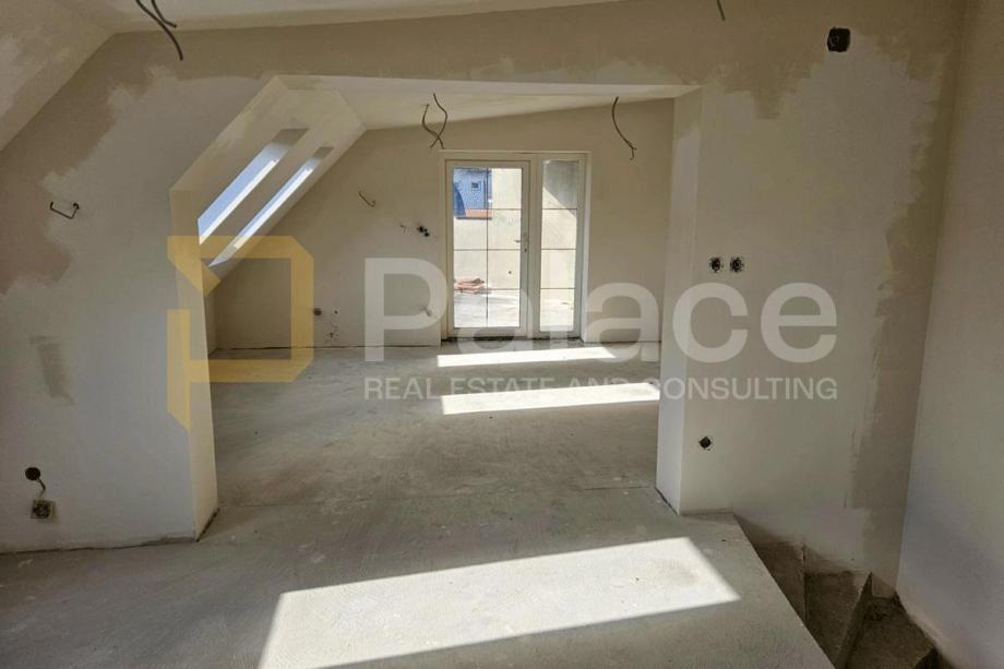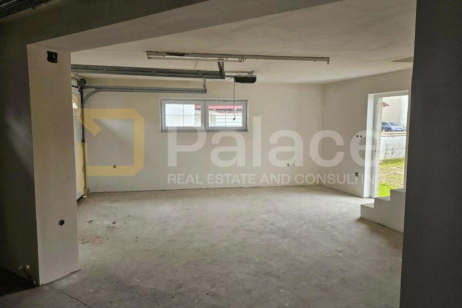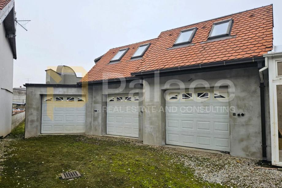Iznad garaža predviđeno je mjesto za poslovni prostor kao i velika terasa idealna za roštilj/krušnu peć. Stražnje dvorište dovoljno je prostrano za izgradnju bazena.