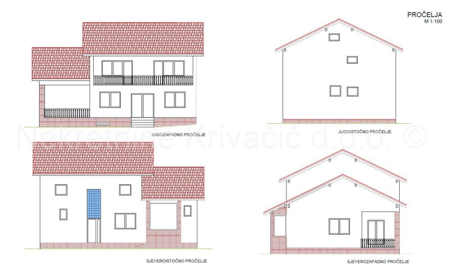 Tlocrt zgrade lijepo je razveden s terasama i balkonima, vrlo prikladna za obiteljski život. Sastoji se od podruma s dva spremišta i kotlovnicom veličine 47 m2.