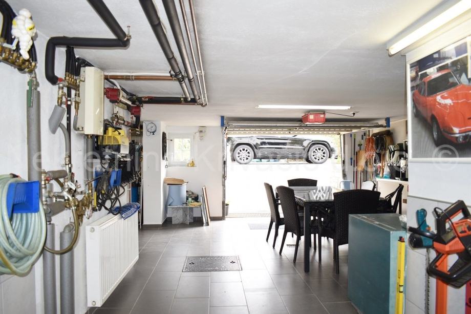 Natprosjećno opremljena, centralno i podno grijanje na lož ulje (spremnik 2000 l napunjen) vanjska stolarija PVC s aluminijem i električnim podizačima roleta. Gradski vodovod i kanalizacija plus bunar. Kuća je uređena, većinom namještena i odmah useljiva.
