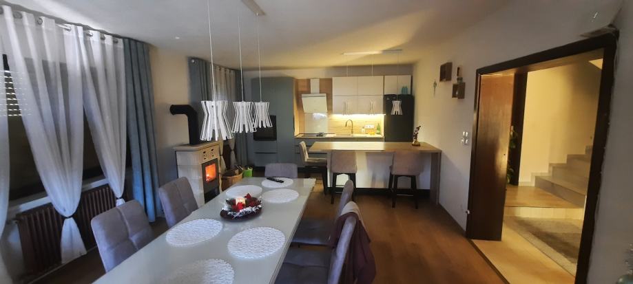 Prodaje se odma useljiva obiteljska kuća blizu centra Štrigove u mirnoj ulici sa uređenim dvorištem. Centar je na 5 min. hoda do svih sadržaja (trgovine, doktor, crkva, kafići, pošta, općina, državni arhiv). Površina parcele je 1257 m2 od toga je kuća 130 m2. Kuća je sagrađena 1985 g. Krovište je adaptirano 2009 g. Kuća sadrži dvije kuhinje od koje je jedna sa dnevnim boravkom i u njoj je kamin na drva. Dva wc-a od toga jedan sa kadom a u drugom je moguče ugraditi tuš kabinu, tri sobe od koje je jedna za peglaraj i slične aktivnosti. Dvije tavanske prostorije, garaža (mala radiona), kotlovnica sa centralnom peći na drva i centralnom plinskom peći. Manja špajza. Kuća ima dvotarifno brojilo i trofaznu struju 17.2 KW, voda, plin, fiksni telefon, internet, kanalizaciju. Natkrivena terasa 30 m2, 6 nenadkrivenih parkirnih mjesta. Sva dokumentacija je uredna i vlasništvo je čisto, bez tereta.