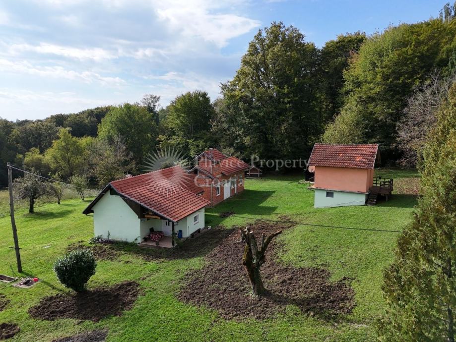 Smješteno u mirnom selu Bović, ovo jedinstveno obiteljsko imanje nudi mirno seosko utočište s više zgrada i obiljem vanjskog prostora, smješteno na prostranoj parceli od preko 5,000 m². Okružena bujnom šumom i slikovitim livadama, imanje obećava privatnost i prirodnu ljepotu, s puno prostora za uzgoj vrta ili jednostavno uživanje u otvorenom prostoru.
