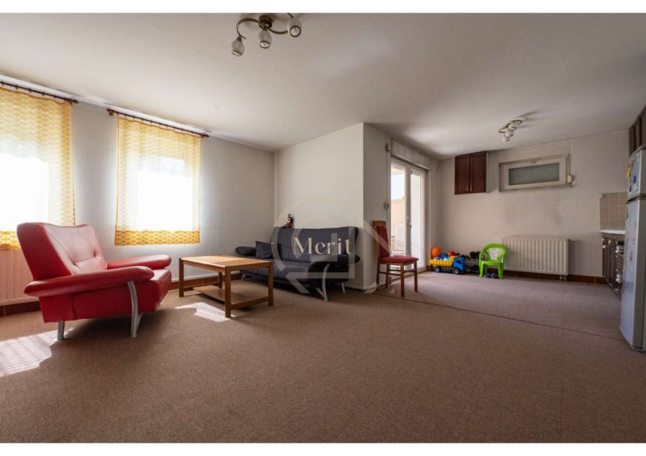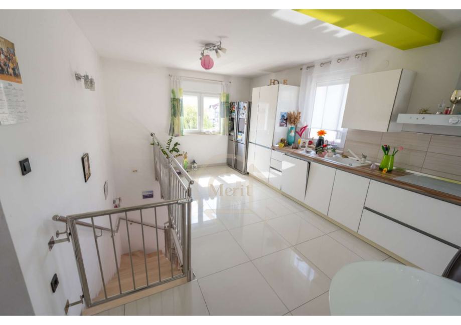 U podrumu se nalazi garaža s podiznim elektromotornim vratima, dvije ostave, boravak te kuhinja, što omogućuje dodatni stambeni ili funkcionalni prostor idealan za hobi, goste ili spremište.
