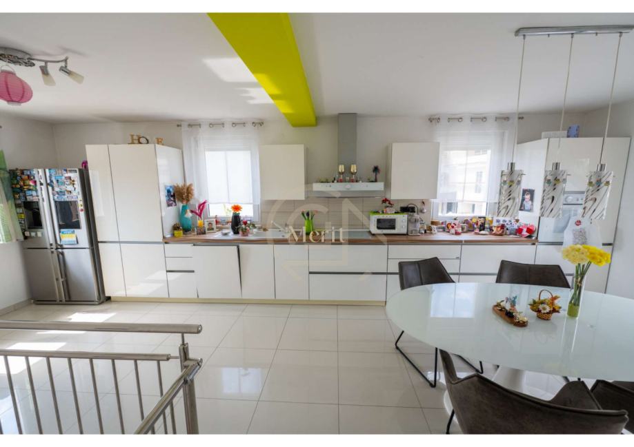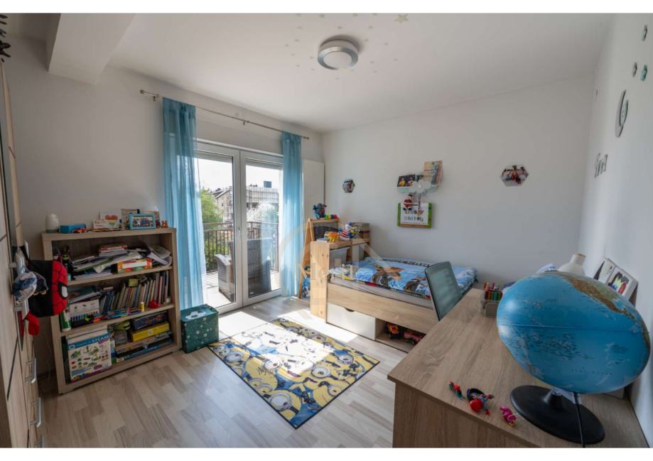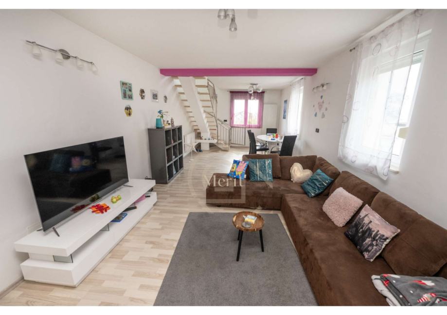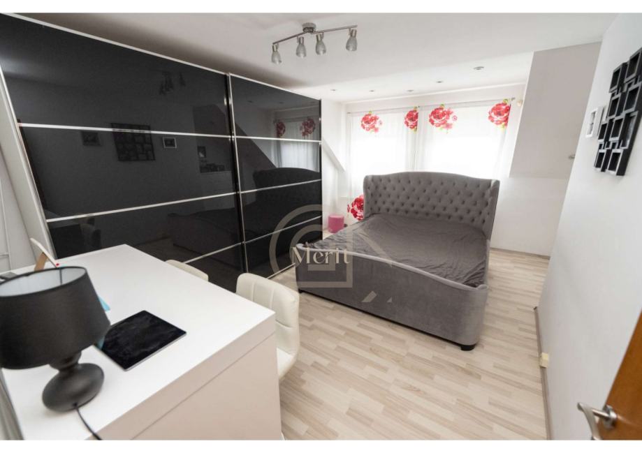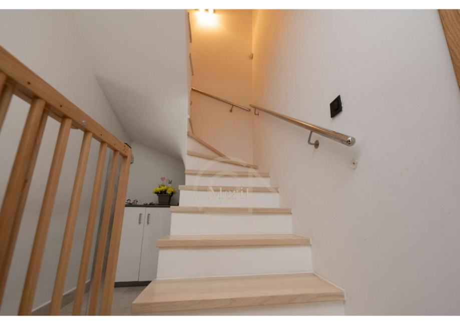 Na katu se nalaze tri spavaće sobe, moderno uređena kupaonica, hodnik, te balkon i terasa koji pružaju dodatni prostor za opuštanje. Na istoj etaži nalazi se i korisna ostava.