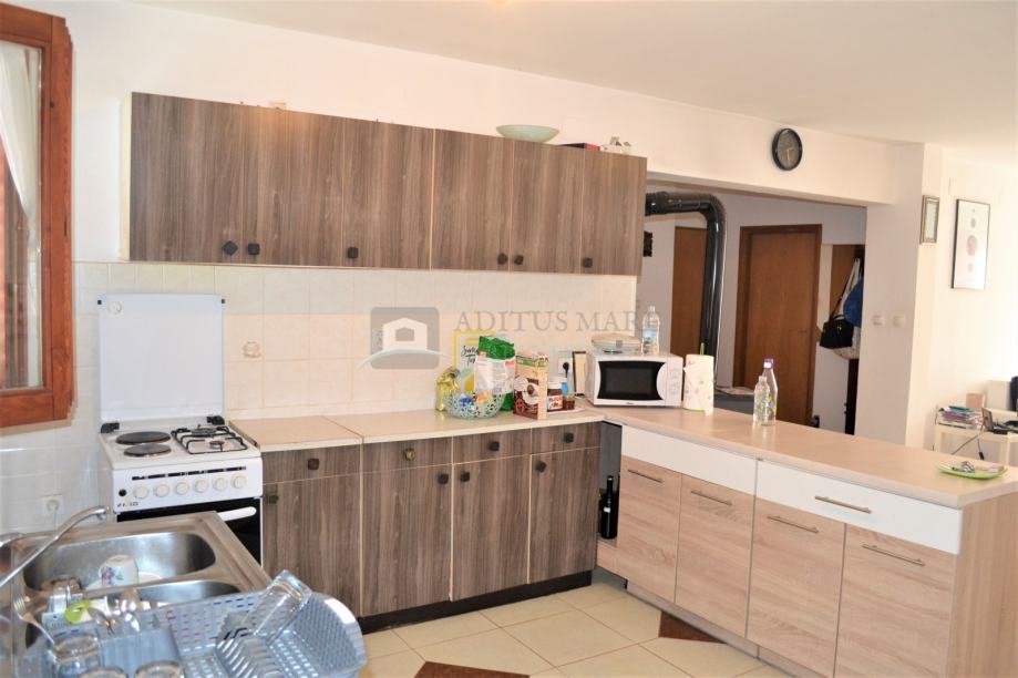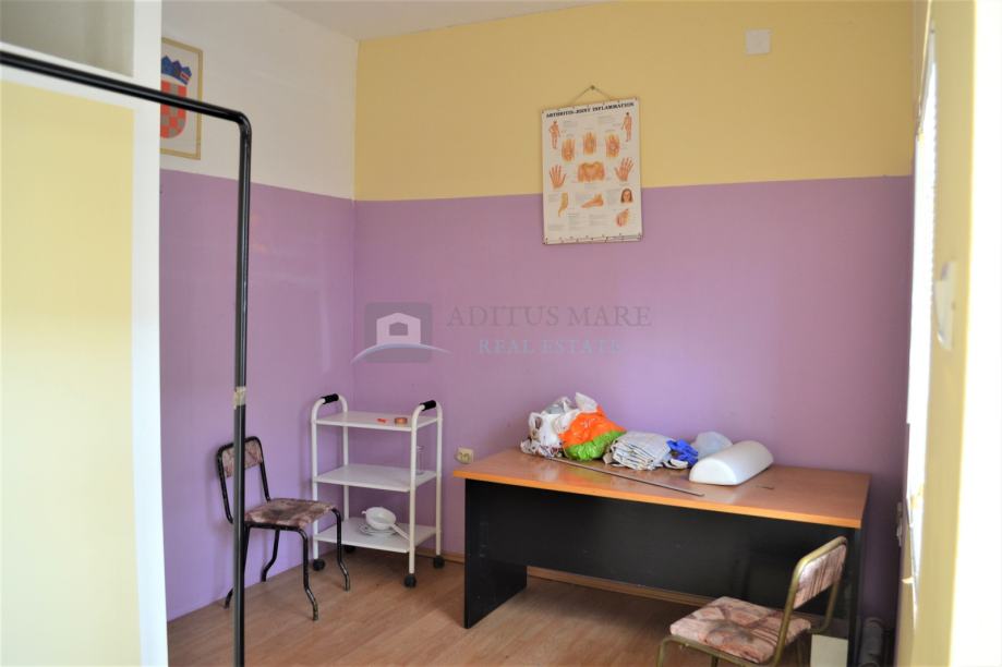 U prizemlju se nalazi opremljen jednosoban stan te poslovni prostor koji se može prenamijeniti u još jedan stan ili spojiti s postojećim.