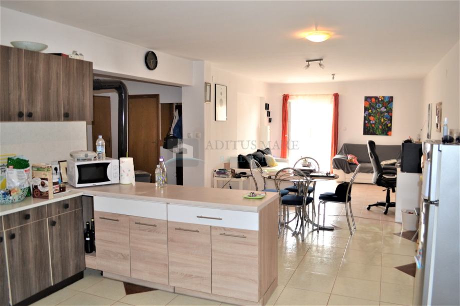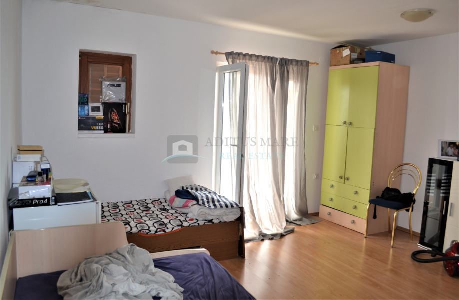 Na prvome katu se nalazi prostrani opremljen dvosoban stan s balkonom i panoramskim pogledom na kanal sv. Ante i šibenske otoke.