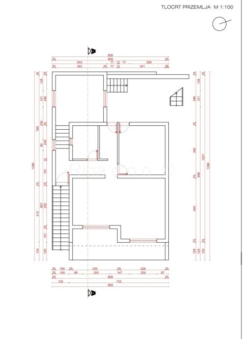 Unutarnji prostor kuće podijeljen je u dvije razine.