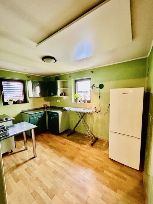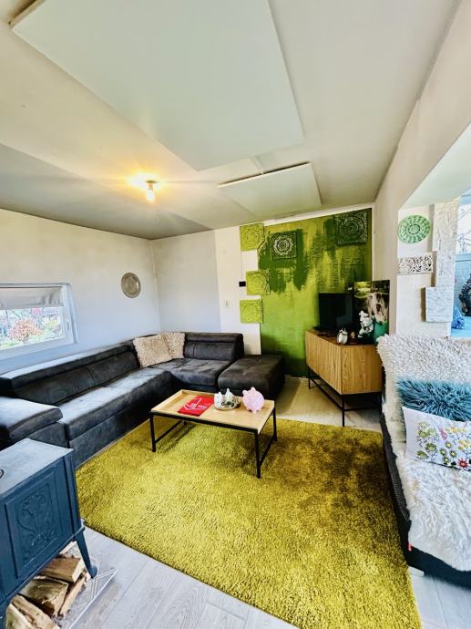 Stambeni dio nekretnine - prizemlje površine 70 m2 ulaznog hodnika, dnevnog boravka, spavaće sobe, kupaonice i kuhinje. Na posjedu se nalazi i pomoćna zgrada površine 28 m2, te spremište površine 13 m2.