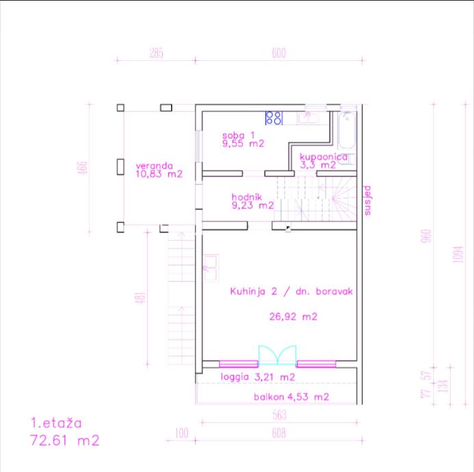 1. kat: 72,61 m²
