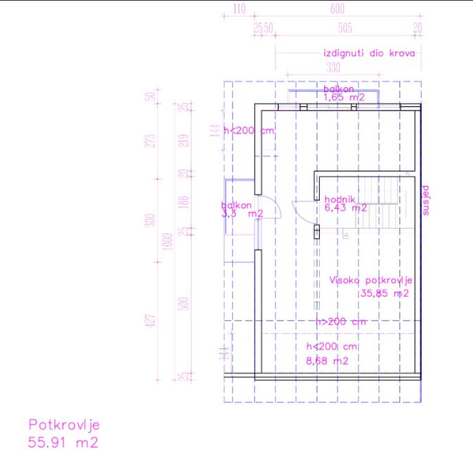 Visoko potkrovlje: 55,91 m²