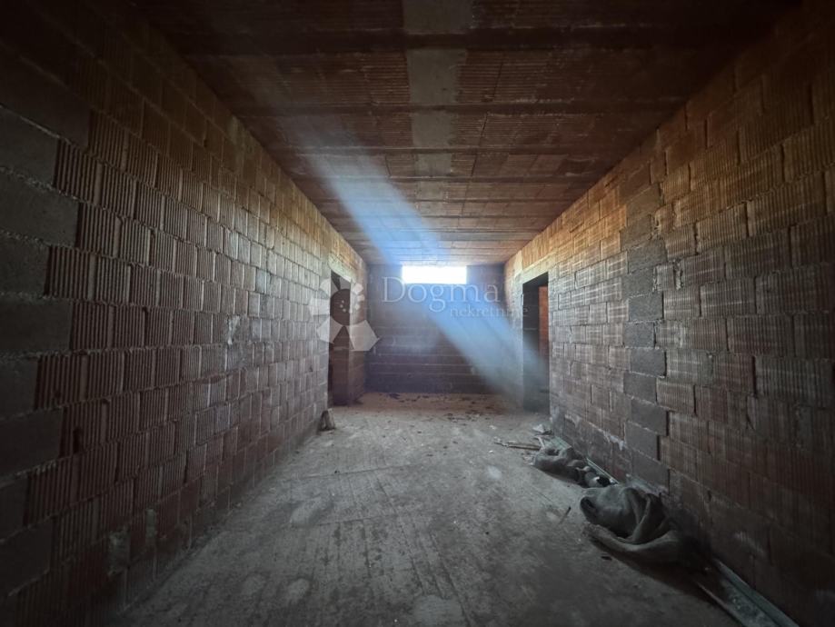 Na prodaju je kuća u roh-bau fazi smještena na atraktivnoj lokaciji na Kastvu s pripadajućom garažom od 36 m².