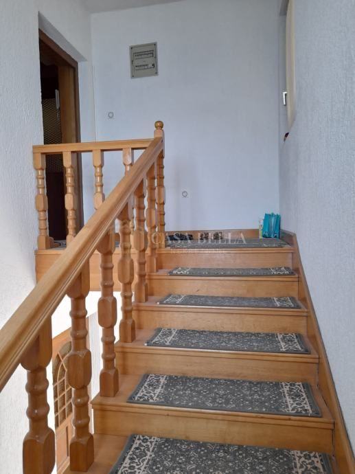 Gornji kat je potpuno uređen te nudi stan od 120 m², savršeno osmišljen za ugodan obiteljski život. Stan je odmah useljiv i namješten, što budućim vlasnicima olakšava prelazak u novi dom. Prizemlje se nalazi u visokom roh-bau stanju, ostavljajući mogućnost za personalizaciju prostora prema vlastitim potrebama i ukusima. Suteren, koji je također u roh-bau fazi, ima zaseban ulaz sa stražnje strane kuće, čime se otvara prilika za kreiranje zasebne stambene jedinice ili prostora za razne namjene.