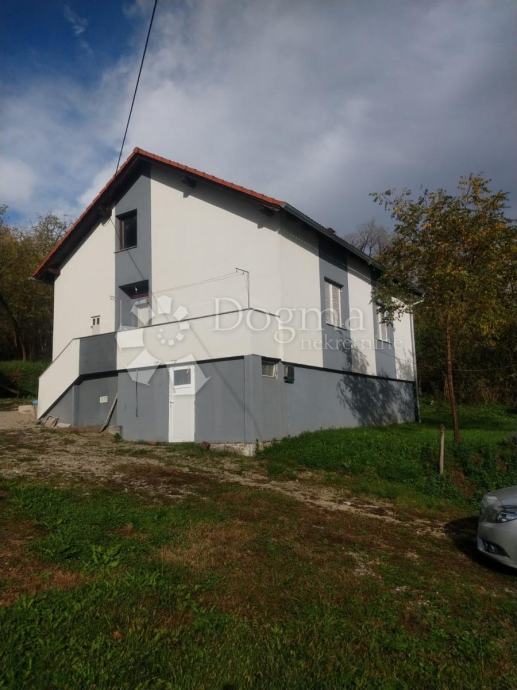 Kuća s velikom okućnicom, okružena zelenilom, nalazi se u mirnoj ulici.