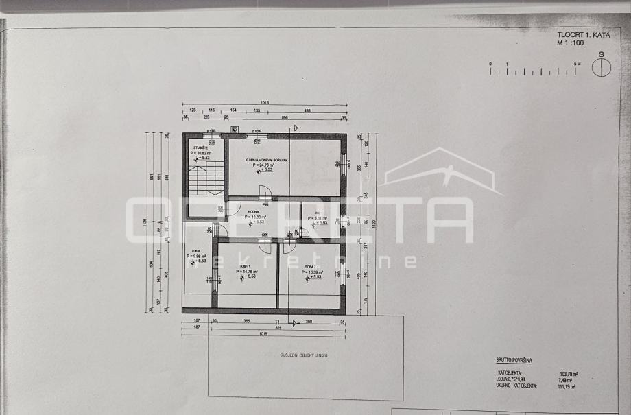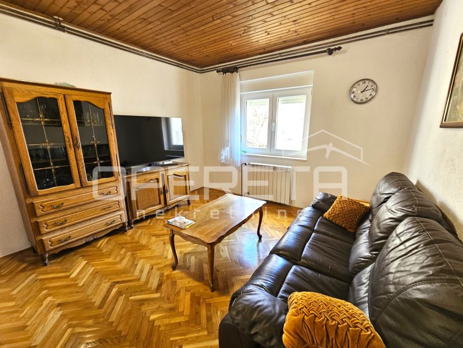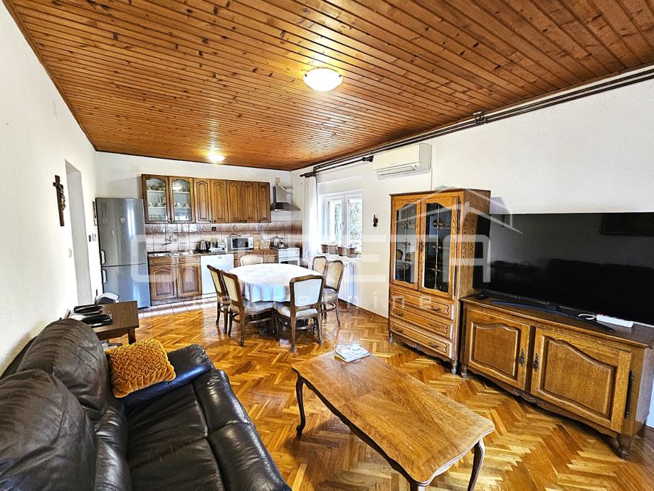 Prizemlje čini dvosobni stan s kuhinjom, blagovaonicom i dnevnim boravkom, kupaonicom s toaletom te prostranim ulaznim hodnikom, dok se na istoj etaži nalazi i dodatna prostorija koja služi kao sprema i kotlovnica.