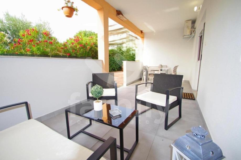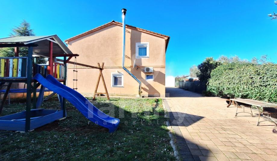 Upravo na području Općine Fažana u mirnom okruženju se nalazi ova predivna obiteljska samostojeća kuća površine 282 m2 sa okućnicom i tri prostrana parkirna mjesta. Kuća se sastoji od 3 zasebne stambene jedinice na dvije etaže. Na prizemnoj etaži se nalaze dva dvosobna stana sa zasebnim ulazima, koji posjeduju pored dvije spavaće sobe, dnevni prostor, kuhinju, kupatila, te svaki posjeduje i veoma ugodnu natkrivenu terasu, koja nam nudi mogućnost i korištenja stanova za osobe sa otežanim kretanjem. Stan na prvoj etaži površine 141 m2 se sastoji od ulaznog pred prostora, otvorenog tipa boravka s visokim stropovima i dekorativnog kamina otvorenog tipa koji nam daje poseban ugođaj prilikom korištenja istog. Dnevni boravak, kuhinja i prostor za ručanje su spojeni u jednu prostrano prostoriju otvorenog tipa sa izlazom na natkrivenu terasu idealnu za uživanje u opuštajućim trenutcima. Pored navedenog stan posjeduje prostrani hodnik, veliko kupatilo sa tuš kadom i zasebnom walk-in tušem, te tri osvijetljene spavaće sobe. Cijeli objekt za sustav grijanja koristi centralno grijanje na drva, te se na prizemnoj etaži nalazi kotlovnica sa skladišnim spremištem. Svaka stambena jedinica ima posebno klima uređaje s zasebnim vanjskim jedinicama koje nisu povezane. Kompletna kuća je opremljena kvalitetnom PVC stolarijom sa duplim staklima, komarnicima i roletama, opremljena sa kućanskim aparatima i elementima i kao takva se prodaje. Orijentacija objekta je idealna jugozapadna što je također jedna velika prednost kod odabira nekretnine.