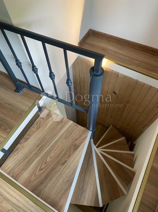 Na katu se nalazi hodnik, kuhinja s rustikalnom blagavaonicom, dnevni boravak, kupaonica i veliki balkon. Ova etaža nudi obilje prostora za druženje, kuhanje i opuštanje. Veliki balkon pruža prekrasan pogled na okolni krajolik i zelenilo.