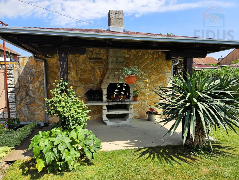 U dvorištu su pomoćne prostorije (ostave), ljetna kuhinja/garaža, roštilj s natkrivenim prostorom i nadstrešnica pod koju stanu 3 auta.