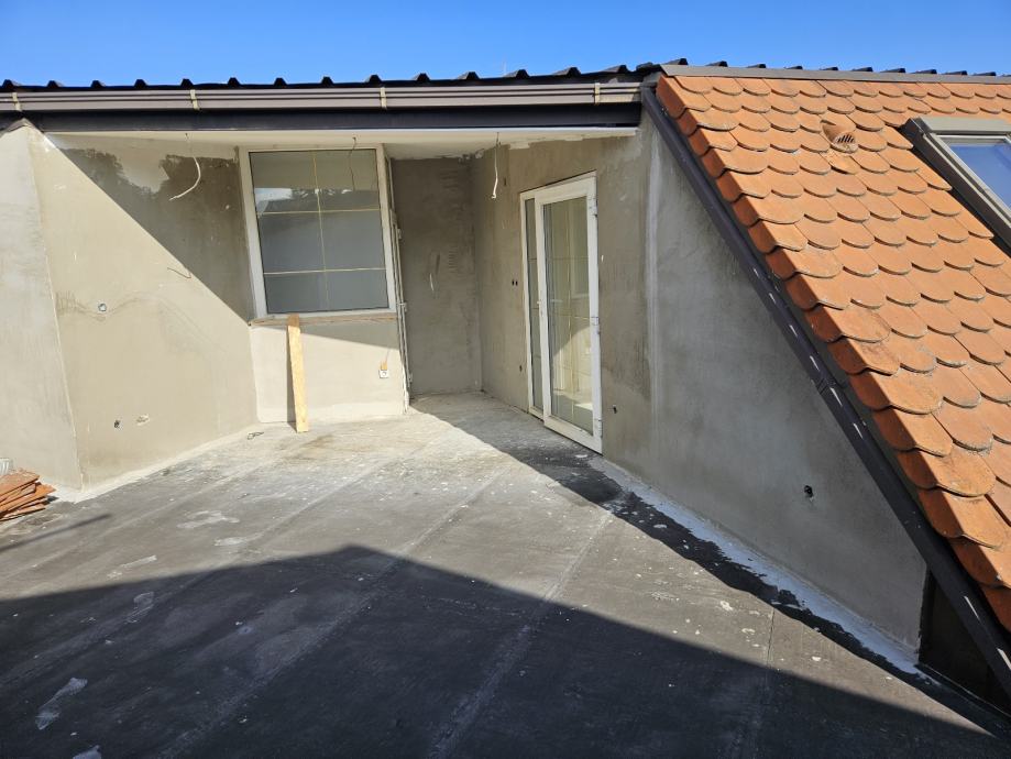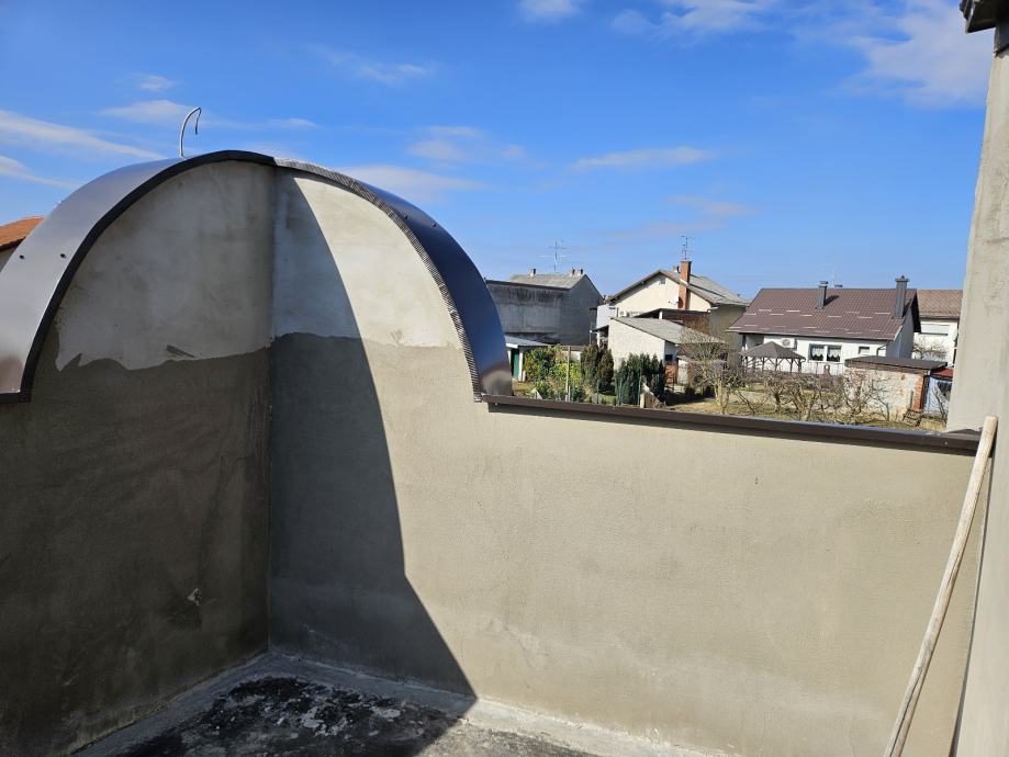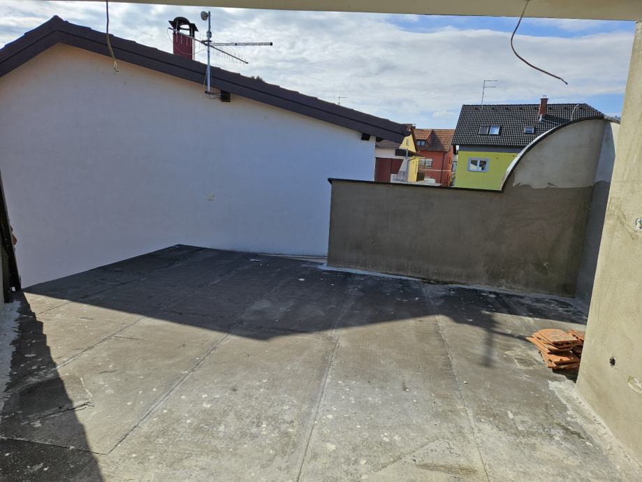 Iznad garaža, poslovni prostor i velika terasa sa predviđenim mjestom za roštilj/krušnu peć.
