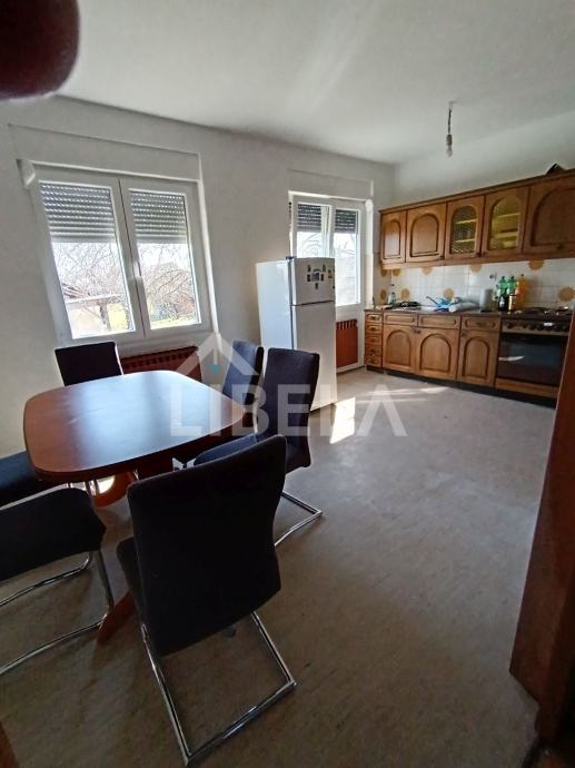 Prodaje se odmah useljiva međuetažna kuća sa gospodarskim zgradama smještena u slijepoj ulici u Selnici, stambene površine 160 m2 uređenog prostora te 70m2 nedovršenog;roh-bau prostora u potkrovlju. Zemljište je površine 2.216m2 te je uređeno i ograđeno. U nastavku kuće nalazi se nadstrešnica za auto, drvarnica, gospodarski objekti te šupa. Kuća je 2024. g. uređena iznutra te je stavljena nova PVC stolarija sa roletama dok je krovište promijenjeno prije 8 godina. Podijeljena je na suteren, visoko prizemlje i potkrovlje, a sastoji se hodnika, kuhinje s blagavaonom, dnevne sobe s balkonom, dvije spavaće sobe, čajne kuhinje i kotlovnice. Grijanje je centralno na plin uz opciju centralnog grijanja putem peći na kruta goriva. Ima priključke struje, vode i plina uz moguć priključak na kanalizaciju. Ima uporabnu dozvolu te je moguća kupnja putem kredita. Mogućnost zamjene za nekretninu na moru.