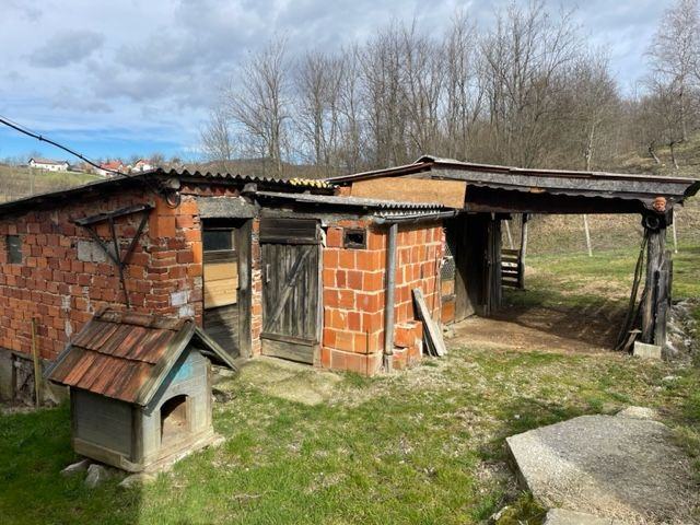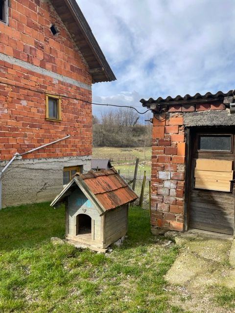 Kuća ima priključak vode i struje, fasade nema, stolarija drvena, krovište salonit ploče.