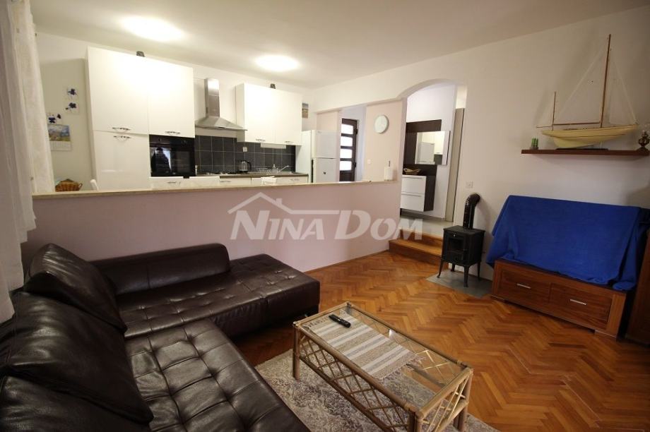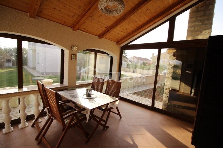 Nekretnina smještena u mirnom dijelu Privlake udaljena svega 180 metara do mora. Izgrađena na 873 m2 zemljišta vanjskih dimenzoja 11.20 x 11.30 met. s pomoćnom zgradom garažom vanjskih tlocrtnih dimenzija 4.0 x 6.0 met.Nekretnina se sastoji od hodnika. kupaone, ostave, kuhinje, dnevni boravak s blagovaonicom, tri spavaće sobe i zatvorenom prostranom lodjom. Klimatizirana, za hladnije vrijeme u godini -peć na drva.Okućnica prostrana laka za održavanje s dijelom zelenila.