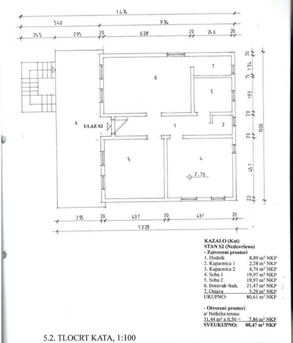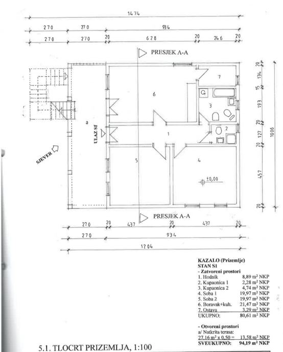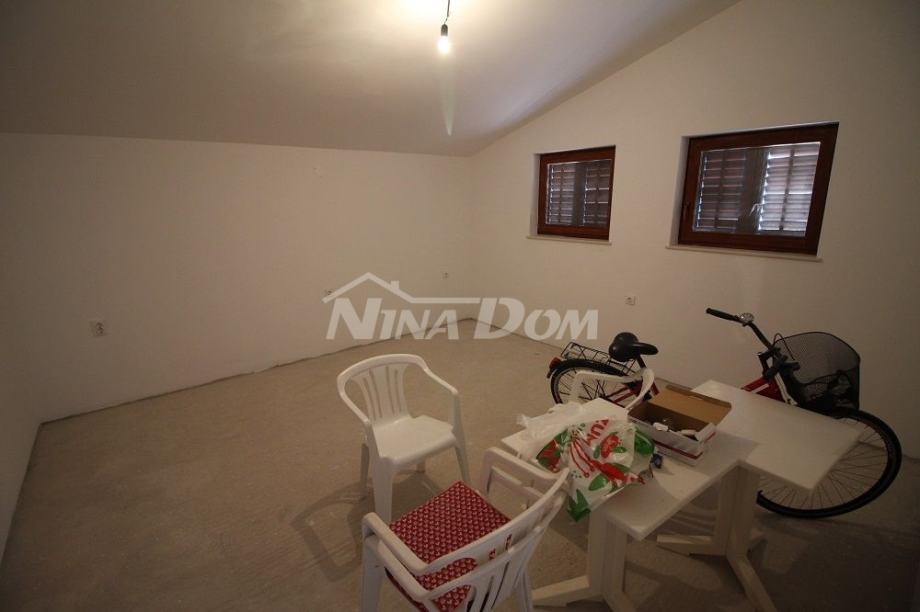 Obiteljska nekretnina koja se sastoji od dvije odvojene stambene jedinice izgrađene na lijepoj i prostranoj okućnici s zelenilom.Prizemlje: natkrivena terasa, kuhinja s blagovaonicom i dnevnim boravkom, dvije kupaone, dvije sobe, ostava. (uređeni prostor)Vanjske stepenice za kat: na katu identičan prostor kao i u prizemlju, prostor je potrebno dovršiti ( izvučene su glazure, potrebno uređenje podnih površina i sanitarija te molerski radovi).Voda cisterna za vodu 15 m3, bušeni bunar, priključak na elektro mrežu.Od mora i uređene plaže udljena je svega 320 metara. Potrebni sadržaji: trgovina, kafić, restoran u neposrednoj blizini.
