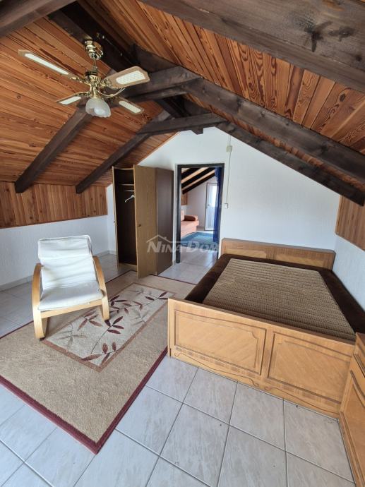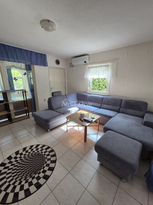 Okućnica s dosta zelenila, od mora i plaže udaljena je 500 metara.