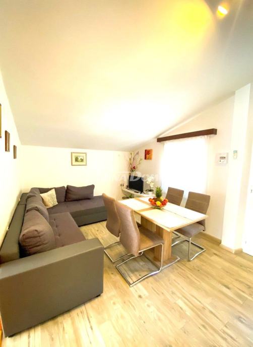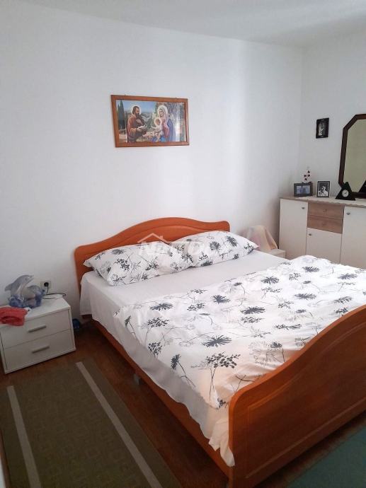 Kat: vanjske stepenice: terasa otvorena, kuhinja s dnevnim boravkom, kupaona, dvije spavaće sobe, natkrivena terasa.