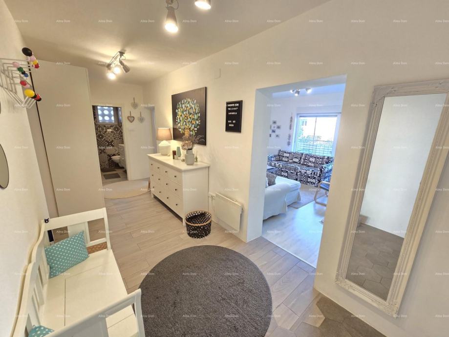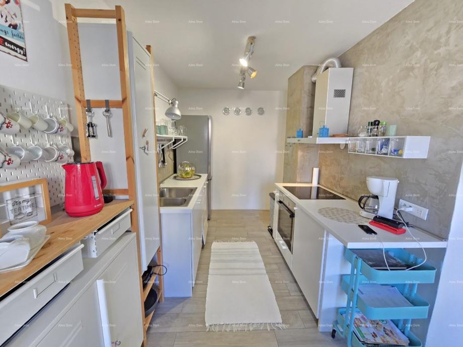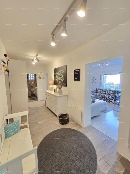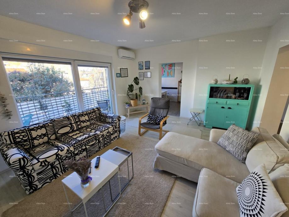 U ponudi je stan na 3. katu zgrade gradjene 70-tih godina. Stan se sastoji od ulaznog hodnika, kuhinje s blagavaonicom koja se spaja s prostranim dnevnim boravkom. Velika staklena stijena pruža puno svjetlosti te je ujedno izlaz na veliku terasu.