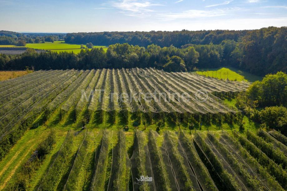 Površina cca 20 ha , od toga oko 6 ha šuma , te 11 ha voćnjak / 0,5 ha trešnje stare 2-4 godine pod mrežom protugradnom i navodnjavanje, 10,5 ha voćnjak jabuke na M-9, 6 sorti , kruške cca 500 stabala , orah