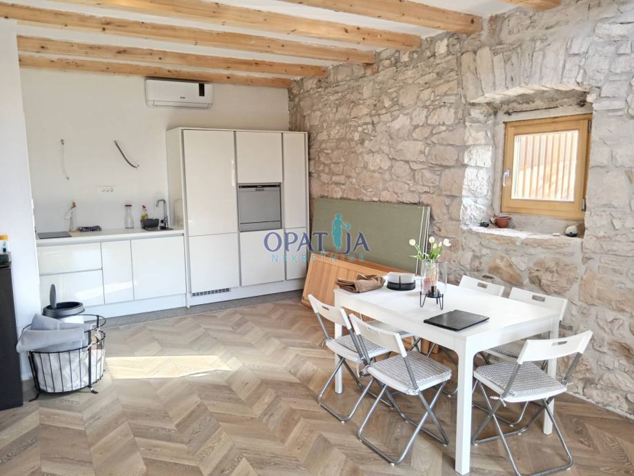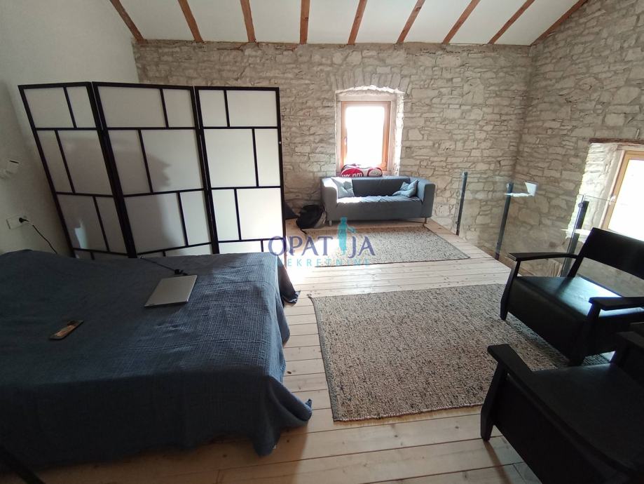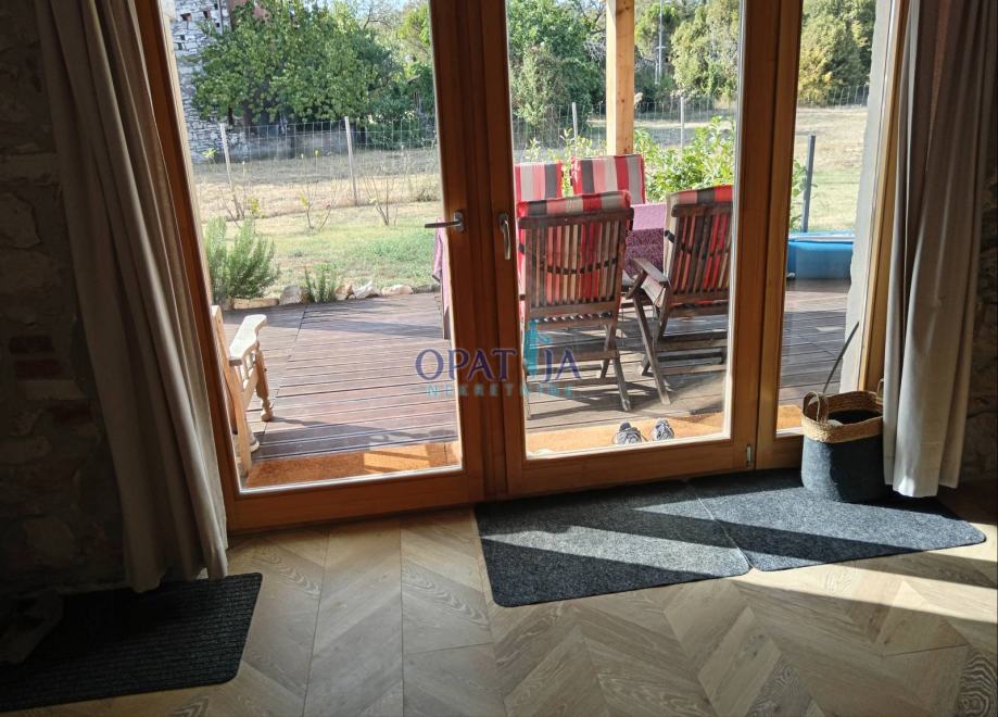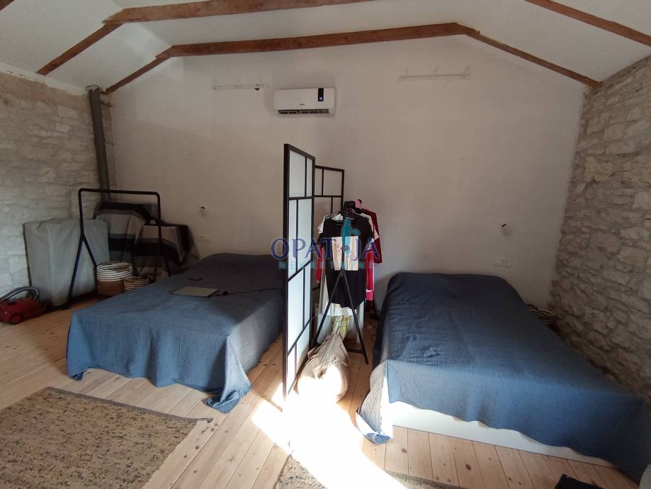 Ova obnovljena, samostojeća, ukusno namještena kamena kuća s dva apartmana i dvorištem (ukupne površine 272 m2) nekretnina je koju vrijedi vidjeti. Oba apartmana (68 m2 i 46 m2) imaju isti raspored: kuhinja s blagovaonom i dnevnim boravkom, velika terasa i kupaonica na donjoj etaži, a spavaći prostor nalazi se na galeriji. Pored kuće nalaze se i dvije drvarnice, a bazen je prednost koju treba posebno istaknuti. Od mora udaljena je 3,5 km, od centra Umaga 2,5 km, a od graničnog prijelaza 14 km. Ova zanimljiva kuća na lijepoj, mirnoj lokaciji idealna je za povremeni boravak ili turistički najam. Kontakt: Gordana +385 92 4385810