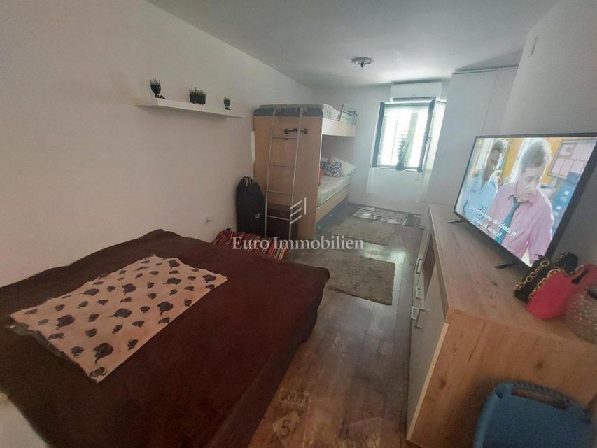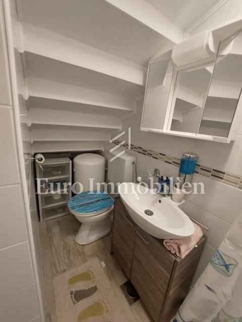 Kuća površine 50 m2 sastoji se od prizemlja, prvog kata i terase na vrhu kuće. U prizemlju se nalazi kuhinja, blagovaonica, dnevni boravak i kupaonica. Prvi kat sastoji se jedne spavaće sobe. Na vrhu kuće nalazi se lijepa terasa. Postoji mogućnost parkiranja na obližnjem javnom parkingu.