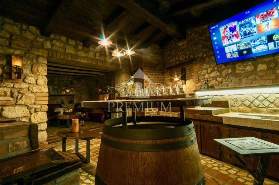 Bazen je veličine 49 m2 a tu su još i dodatni sadržaji za zabavu (stol za biliard, pikado).