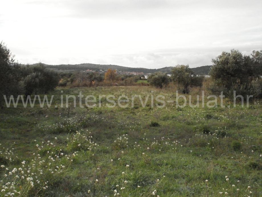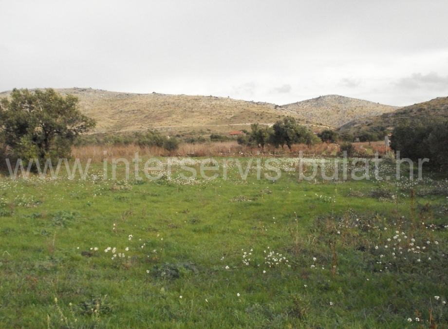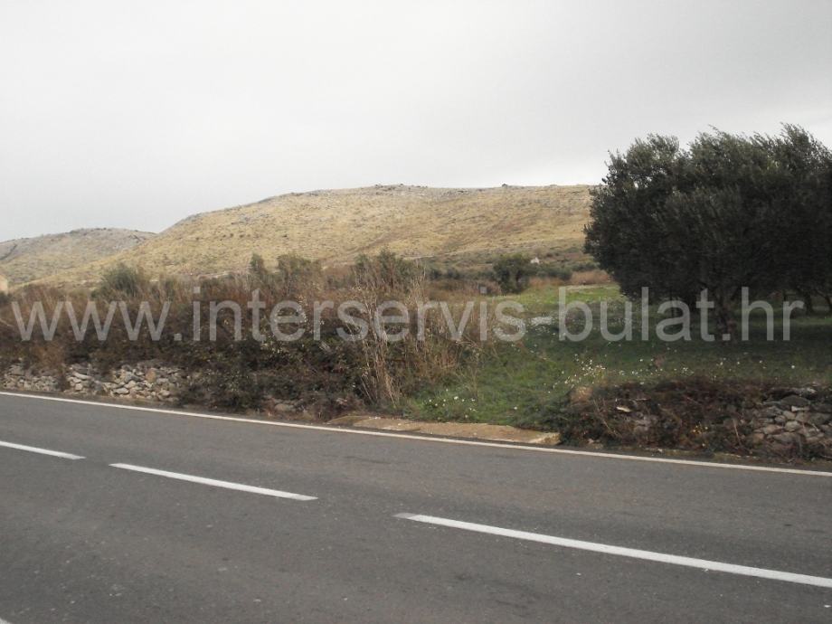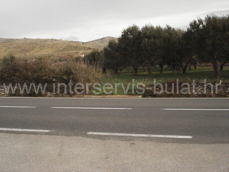 Poljoprivredno zemljište površine 1.800m2, nalazi se uz glavnu prometnicu prema Vrpolju (iznad ceste). Parcela ima 22m širine uz cestu i na njoj se nalazi pet stabala maslina. Vlasništvo je čisto.